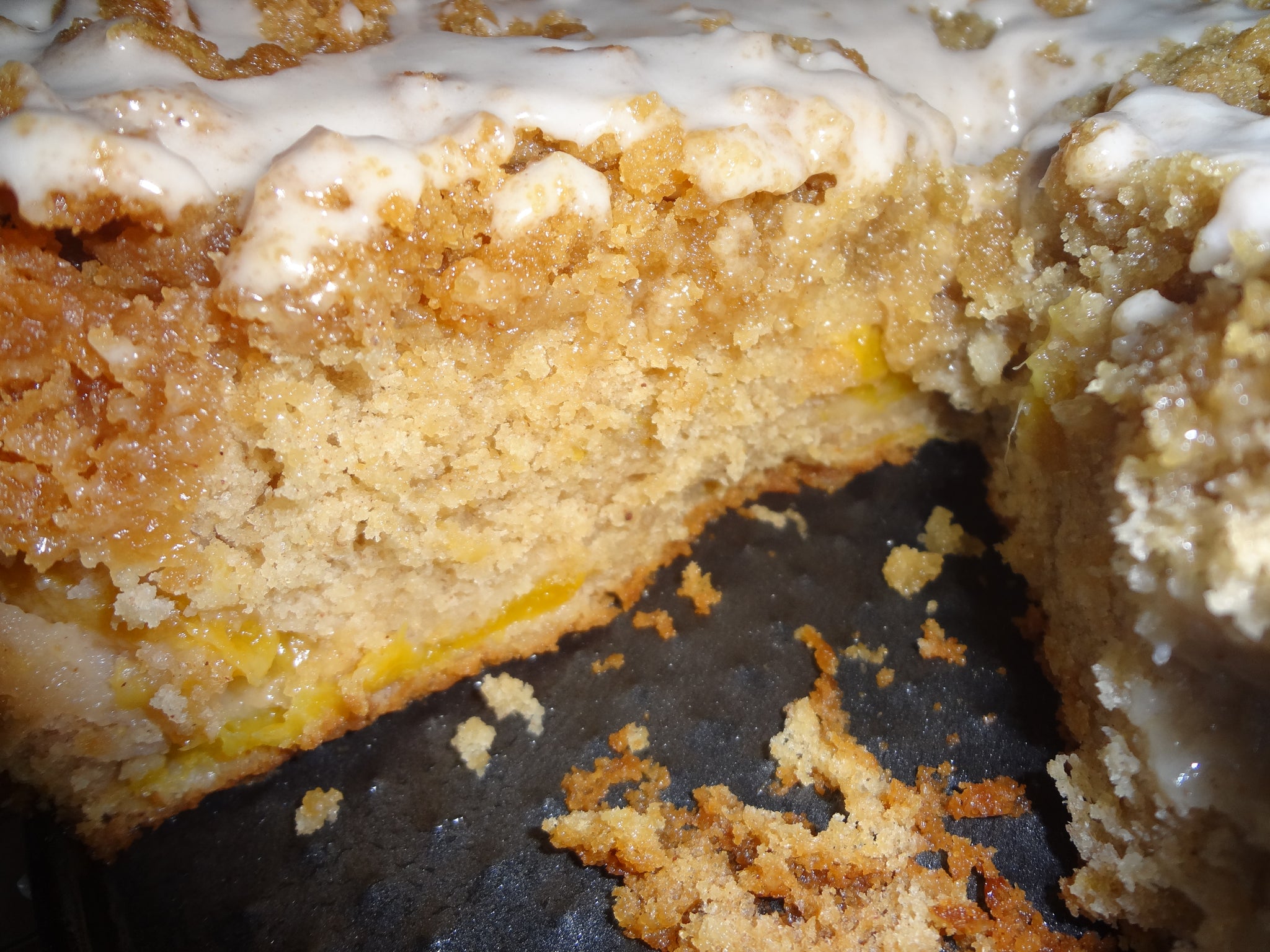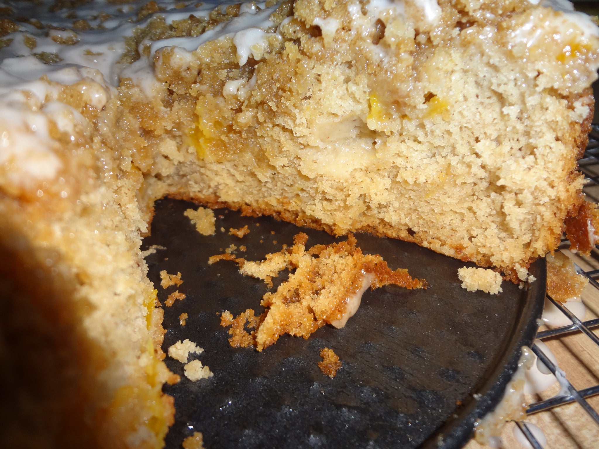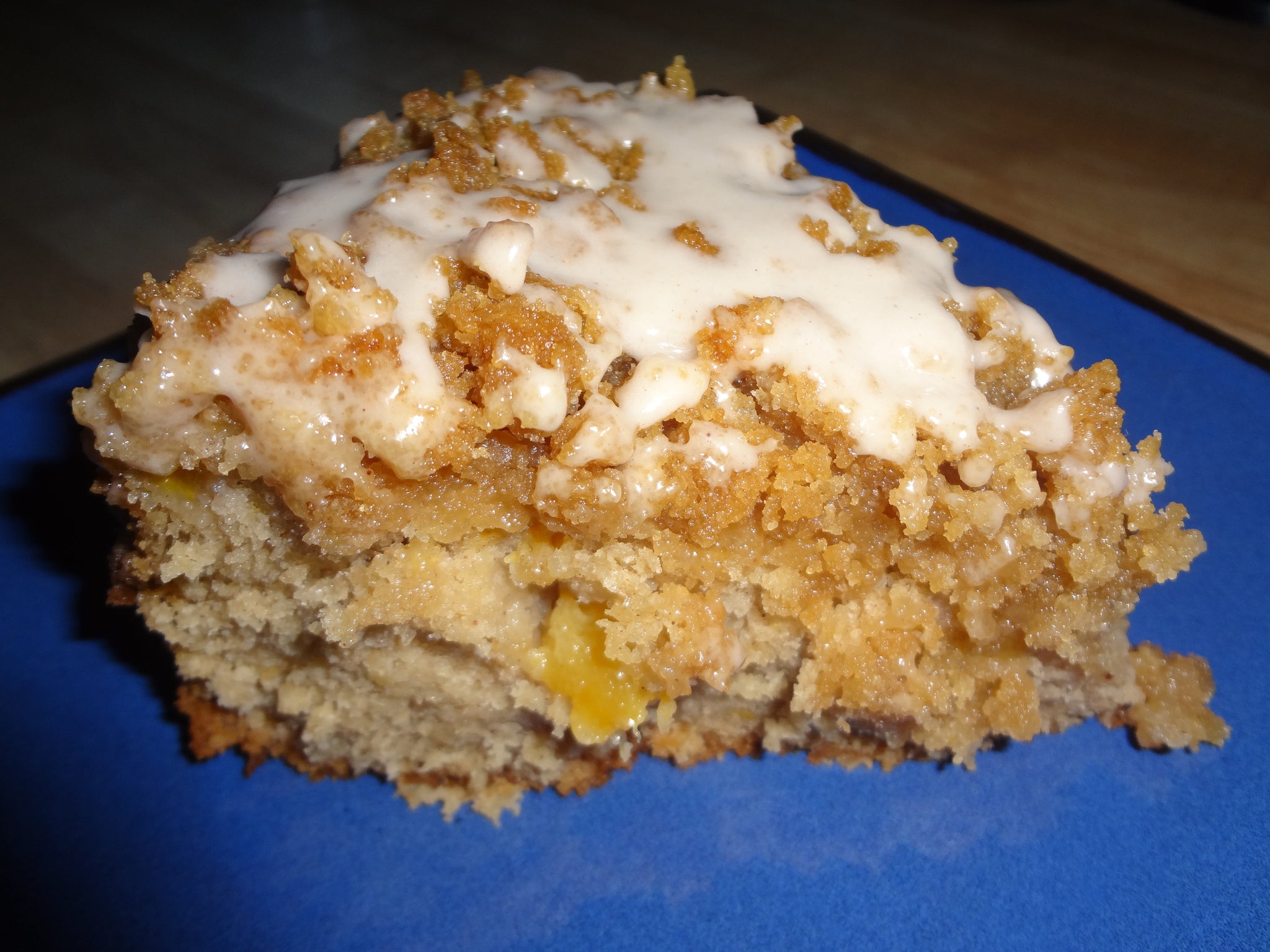 Homemade Peach Cobbler Coffee Cake With a Sweet Cinnamon Drizzle. A moist cake with delicious fresh peaches (when in season). An especially yummy dessert and/or breakfast treat. PLEASE NOTE THAT WE DO NOT KNOW WHAT THE WEATHER IS LIKE IN ANY GIVEN AREA DURING THE SEASONS. THAT BEING SAID, FOR PRODUCTS THAT CONTAIN FRUIT OR ANY OTHER WEATHER (HEAT) SENSITIVE INGREDIENTS, YOU WILL HAVE THE CHOICE OF EITHER HAVING YOUR ORDER SHIPPED WITH THERMAL WRAP AND ICE PACKS OR NOT. THIS WILL HELP US GREATLY BY ELIMINATING THE GUESS WORK FOR US AND WILL ALSO HELP TO ENSURE YOU WILL RECEIVE YOUR ORDER IN PERFECT CONDITION.