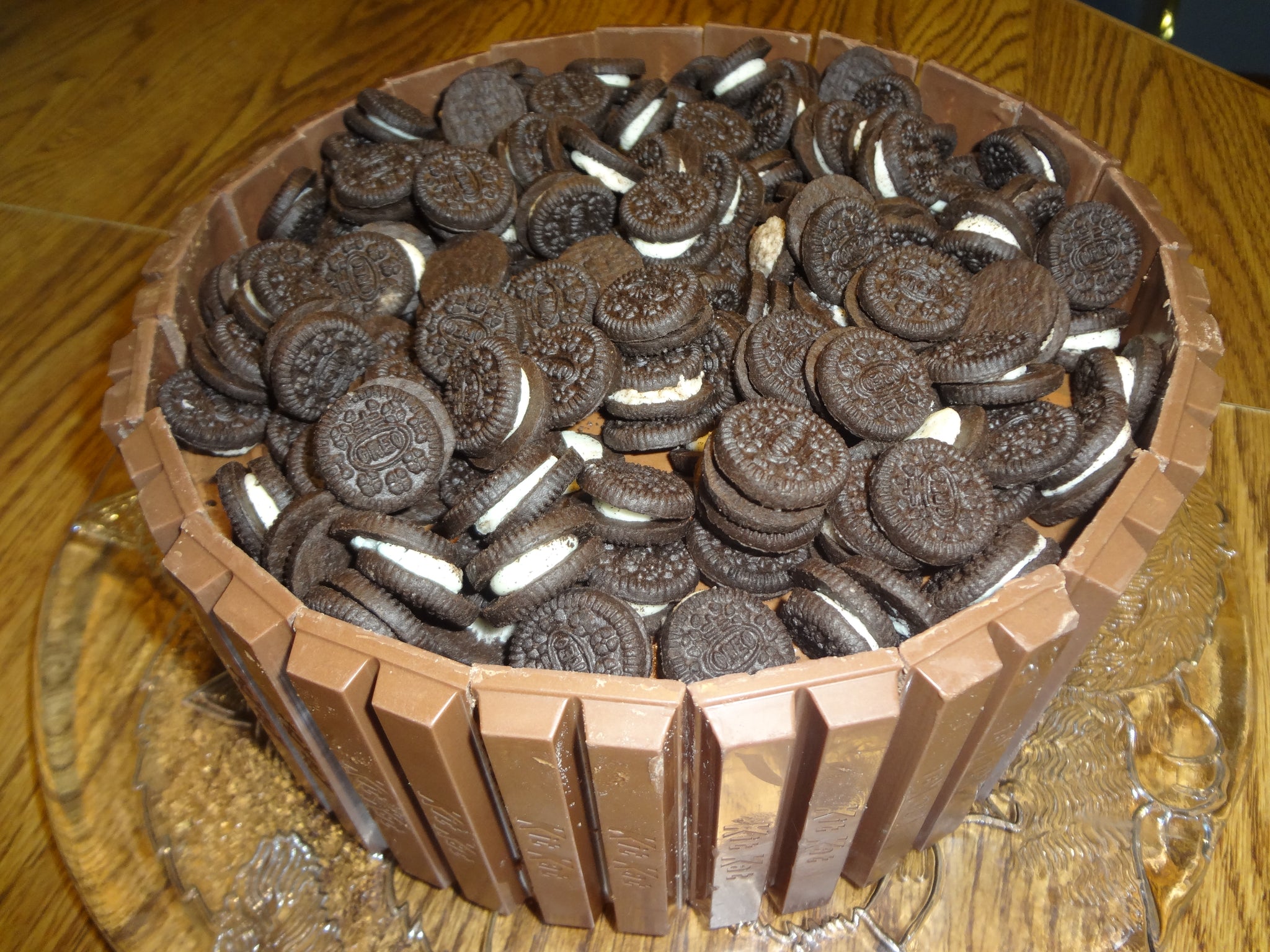 Moist, Decadent, Chocolaty Homemade Chocolate Kit Kat Cake. Filled with chocolate flavor, this cake is incredible with a smooth buttercream frosting. With many different variations of what can be put in the middle including mini Oreo's, M&M's, mini chocolate eggs, sprinkles, this cake is very versatile for all occasions. Cake will be finished off with a bow tied around the middle of the Kit Kat bars. PLEASE NOTE THAT ICE PACK SHEETS AND THERMAL WRAP WILL BE USED TO SHIP THIS CAKE AND THAT COST IS INCLUDED IN THE PRICE.
