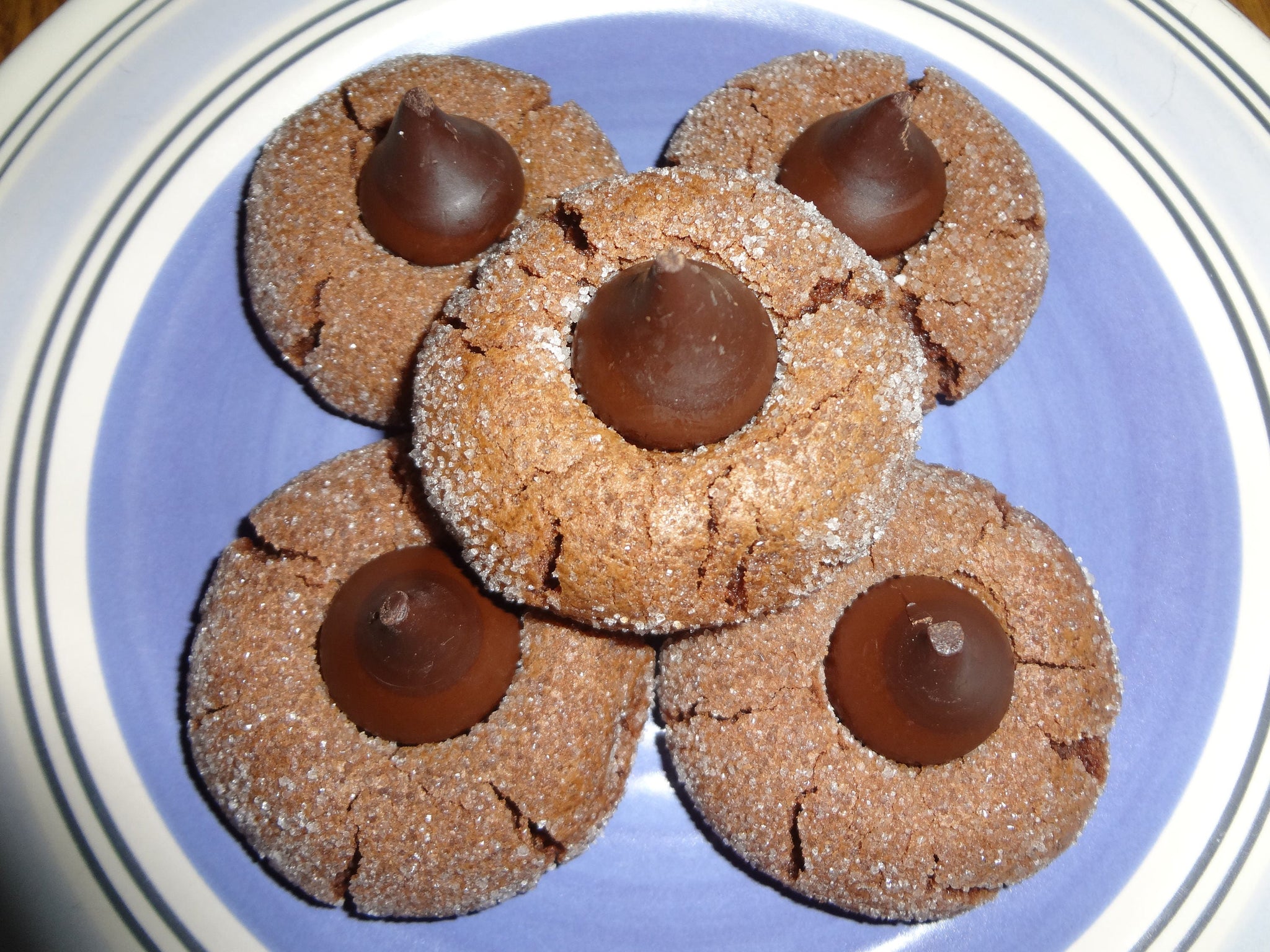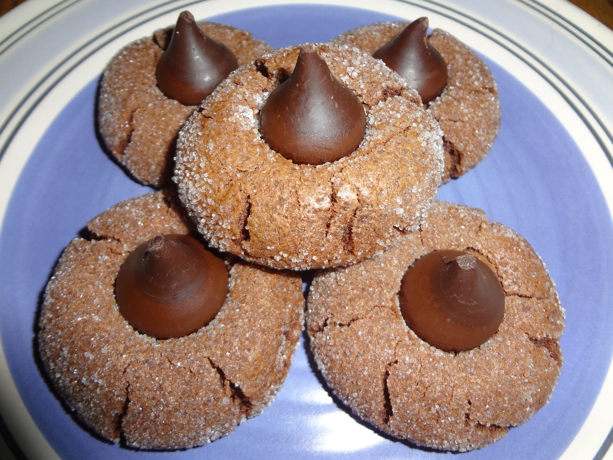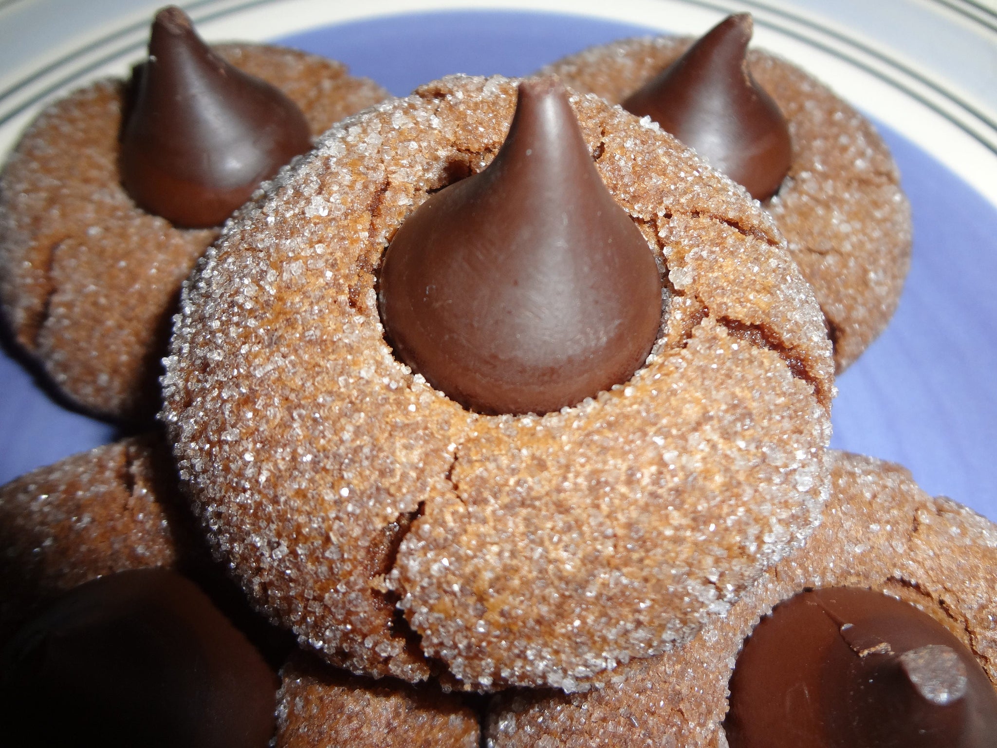 Chocolate Lover's Dream Homemade Triple Chocolate Kiss Cookies. With a fudgy and brownie like center and a crisp sugary coating, these cookies are sure to please.