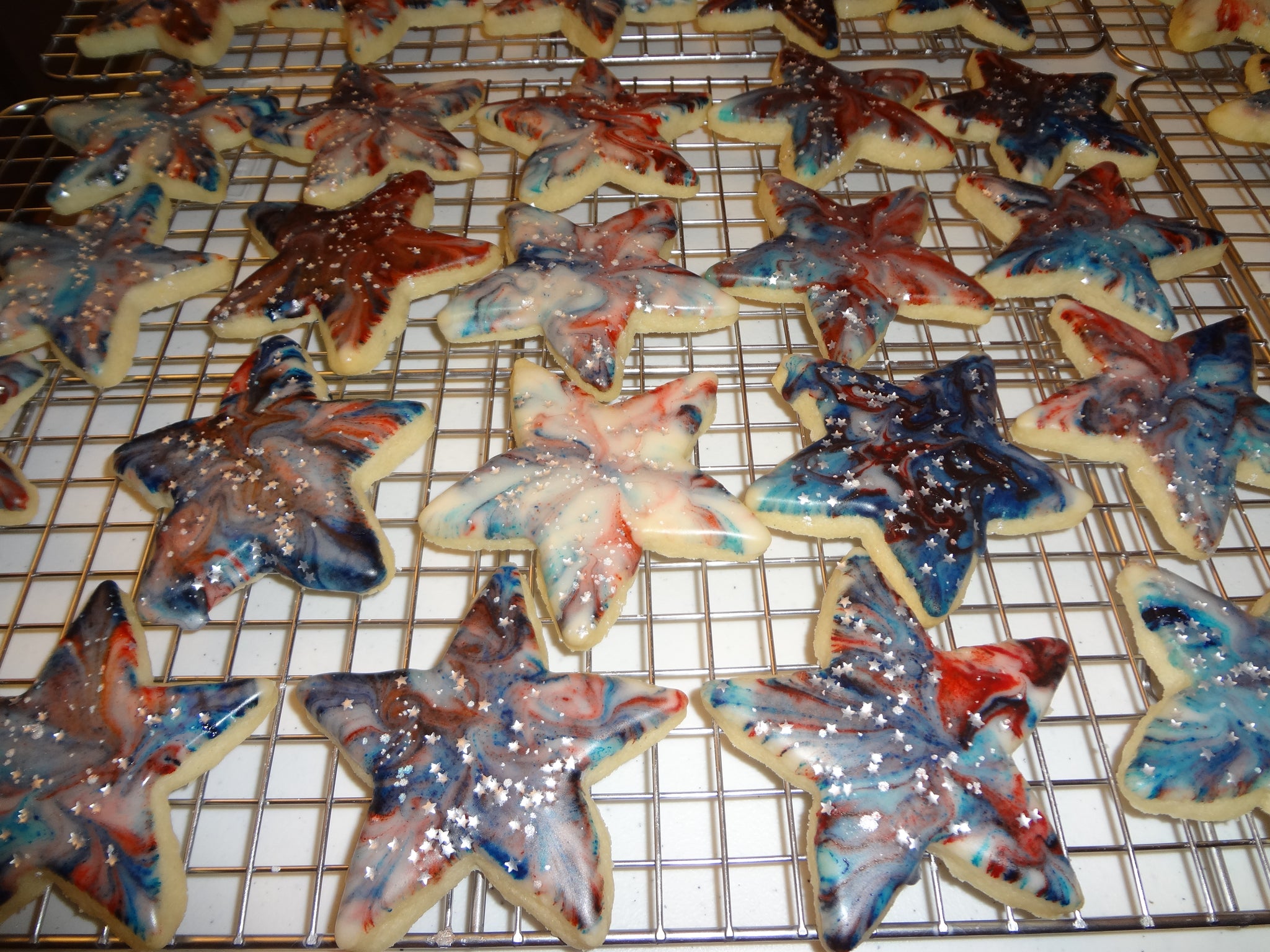 Soft and Festive Homemade Two Color Marbled Sugar Cookies. Perfect for holidays and/or special events, these cookies taste great, are pretty and shiny, and perfect for all occasions. PLEASE SPECIFY COOKIE SHAPE WITH YOUR ORDER.
