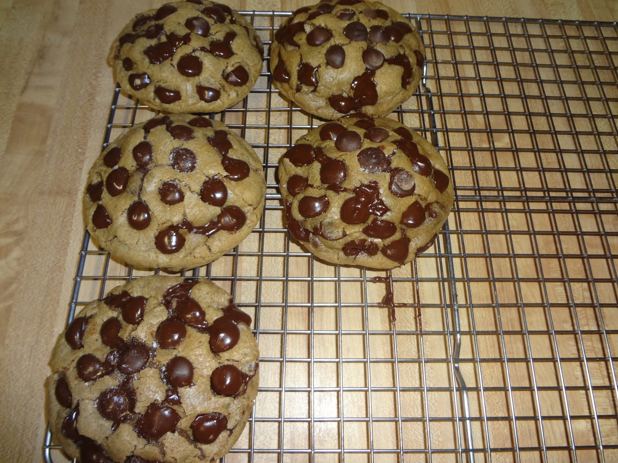 Very Large (4 3/4 oz each) Homemade Copycat Bakery Cookies Coated in Chocolate Chips and sprinkled with pink Himalayan sea salt.