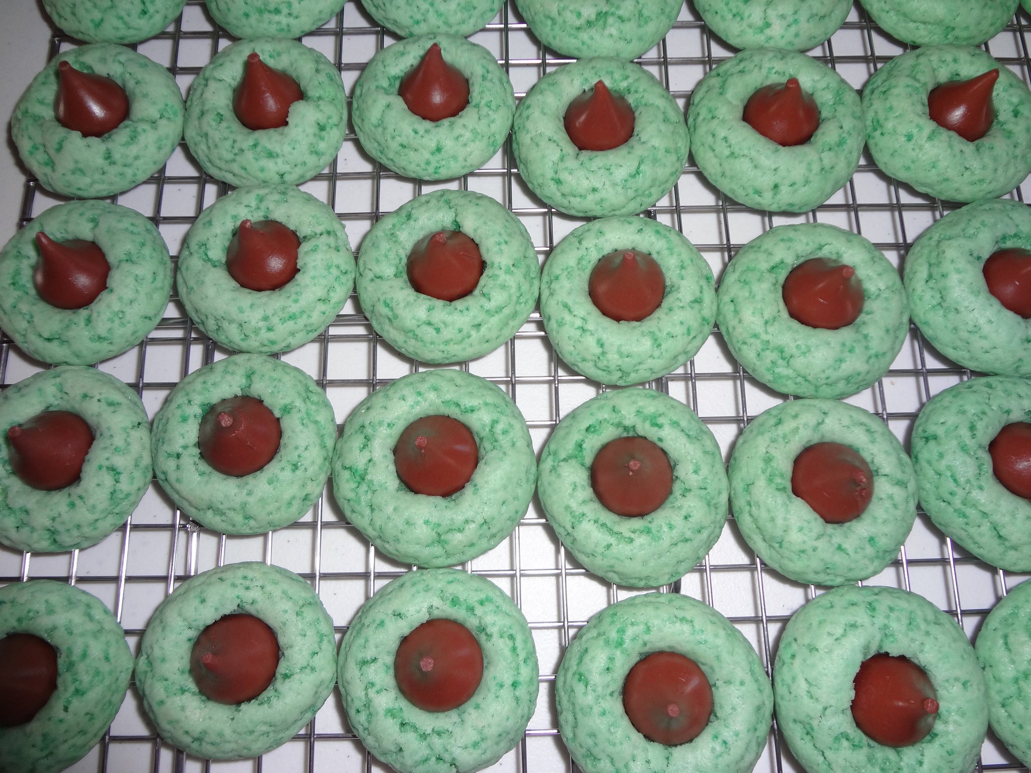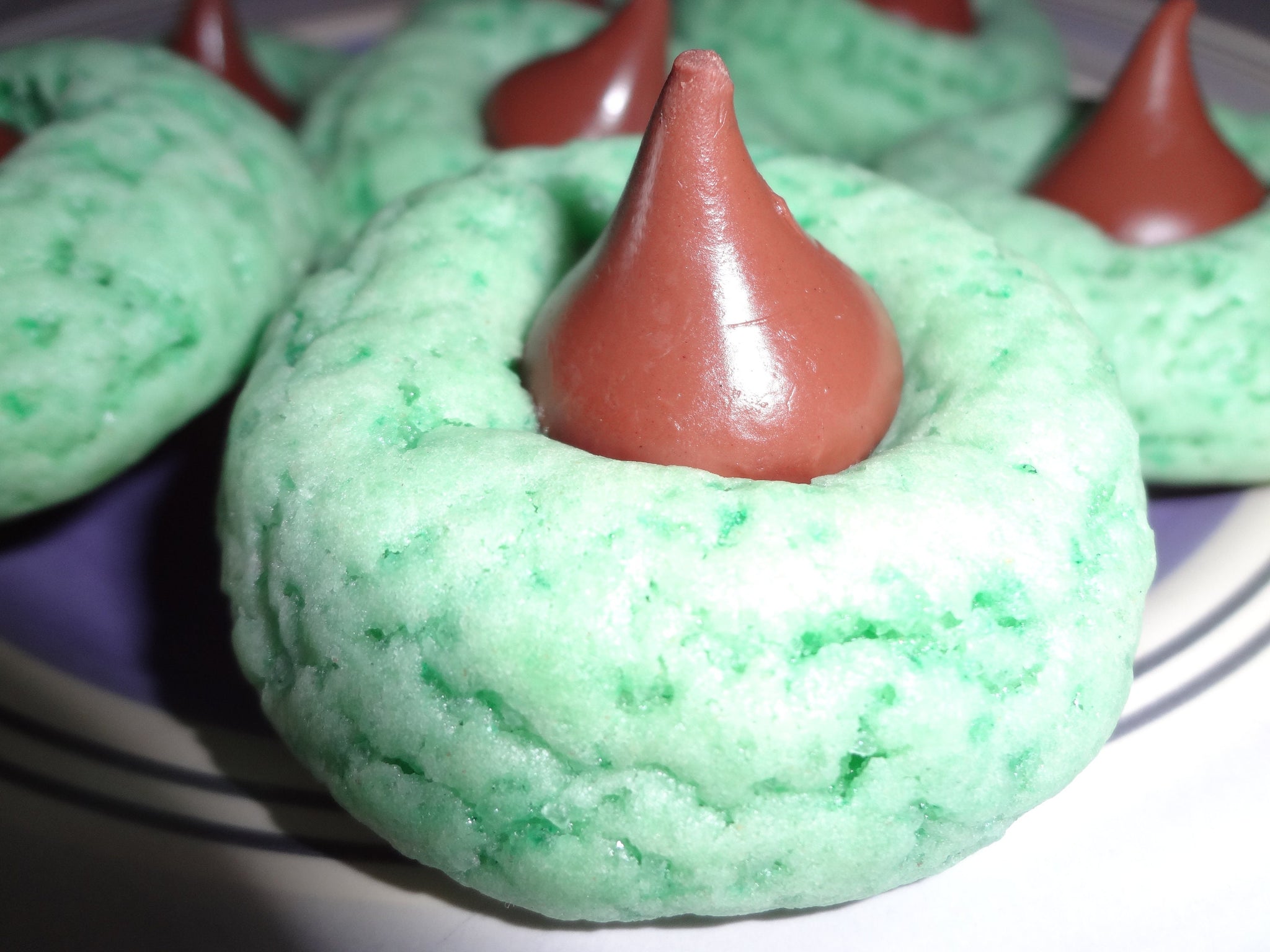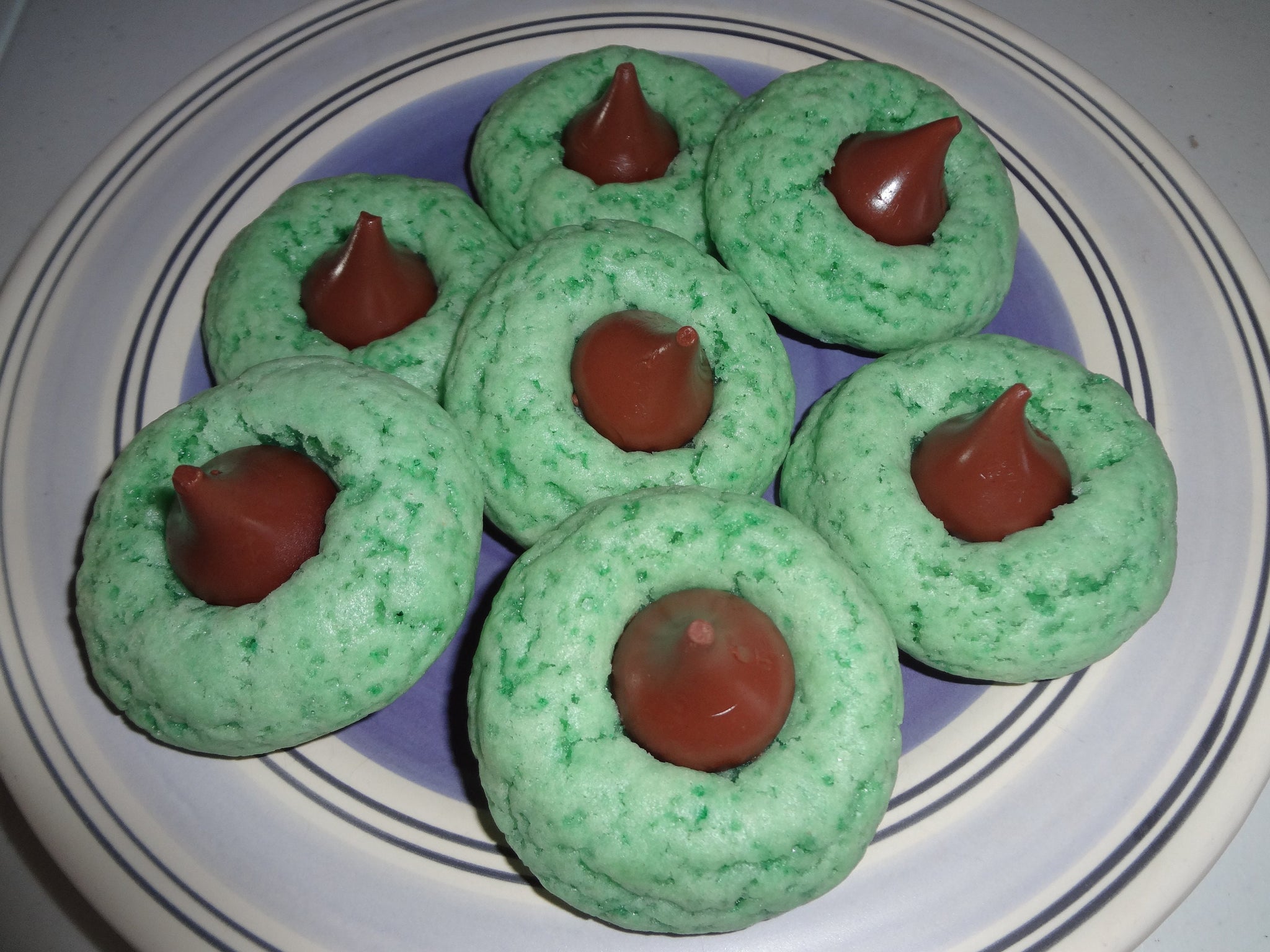 Homemade Minty Green Crinkle Kiss Cookies. Great for St. Patrick's Day, Christmas or just anytime. This is a fun cookie which is soft, minty and chocolaty all in one.