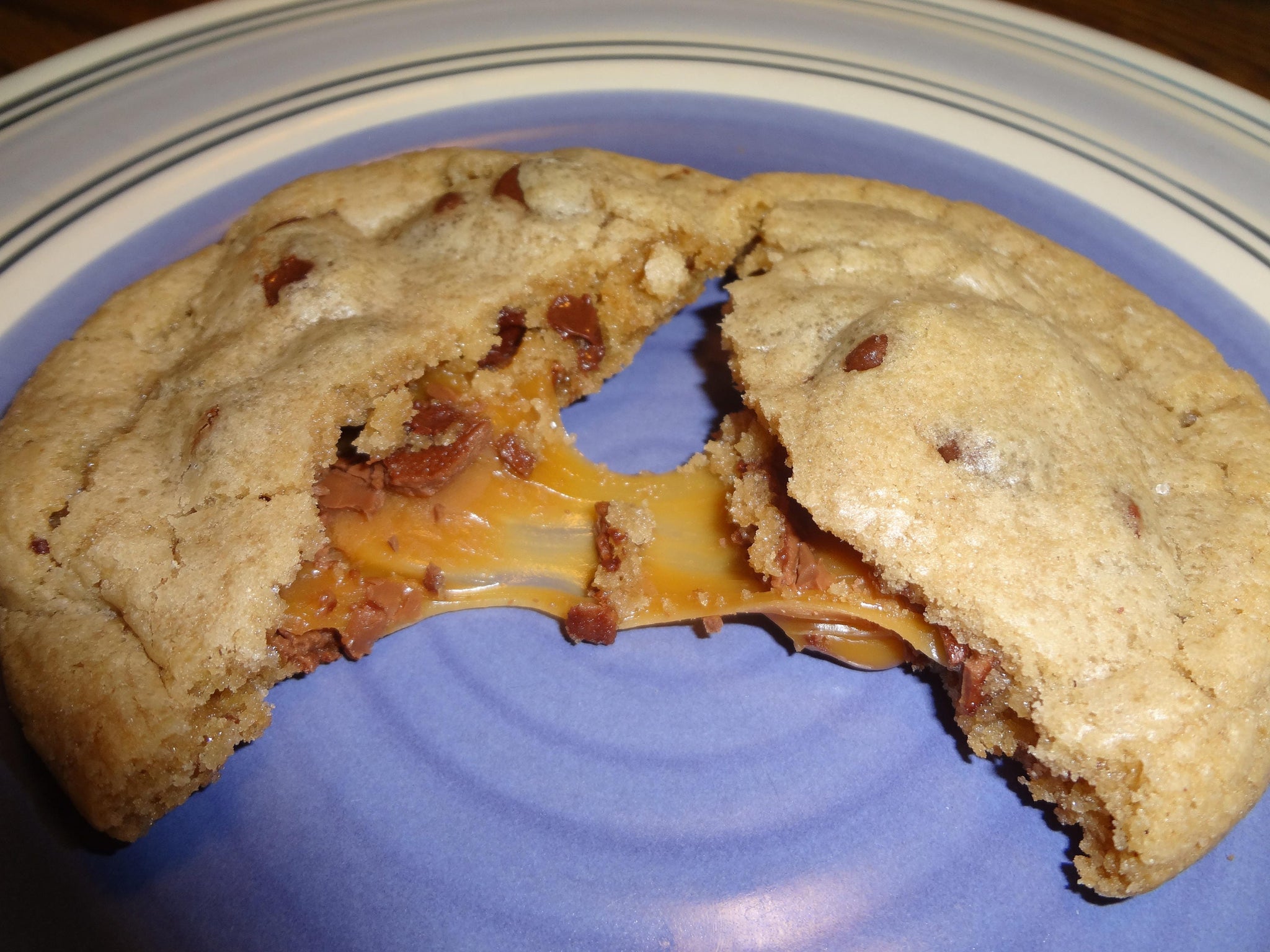 Terrific Homemade Milky Way Salted Caramel Cookies. A chocolate chip cookie that is updated with Milky Way Simply Caramel candy stuffed inside and lightly sprinkled with sea salt. A brilliant explosion of sweet and salty, chocolate and caramel flavors will have you coming back for more!