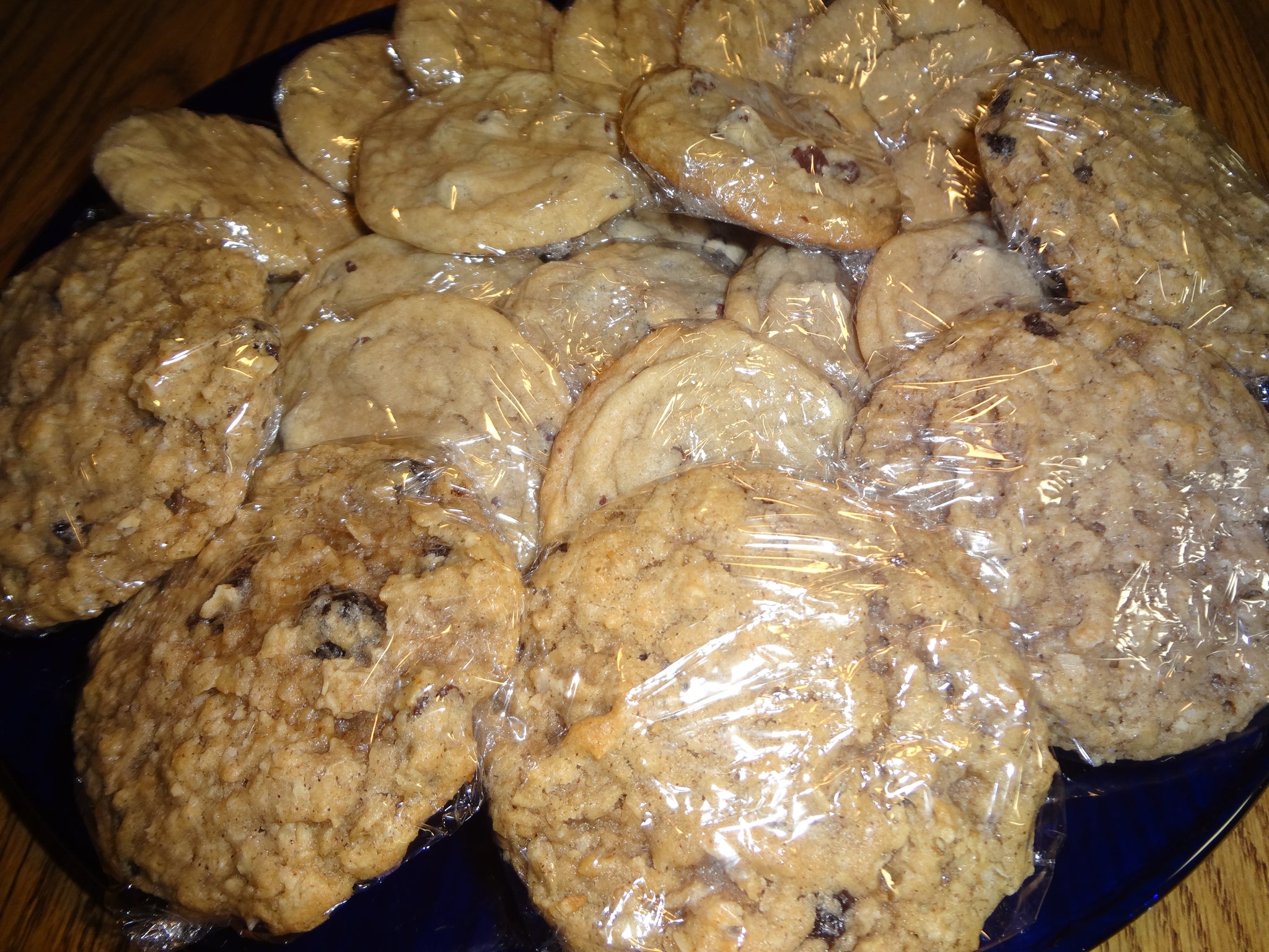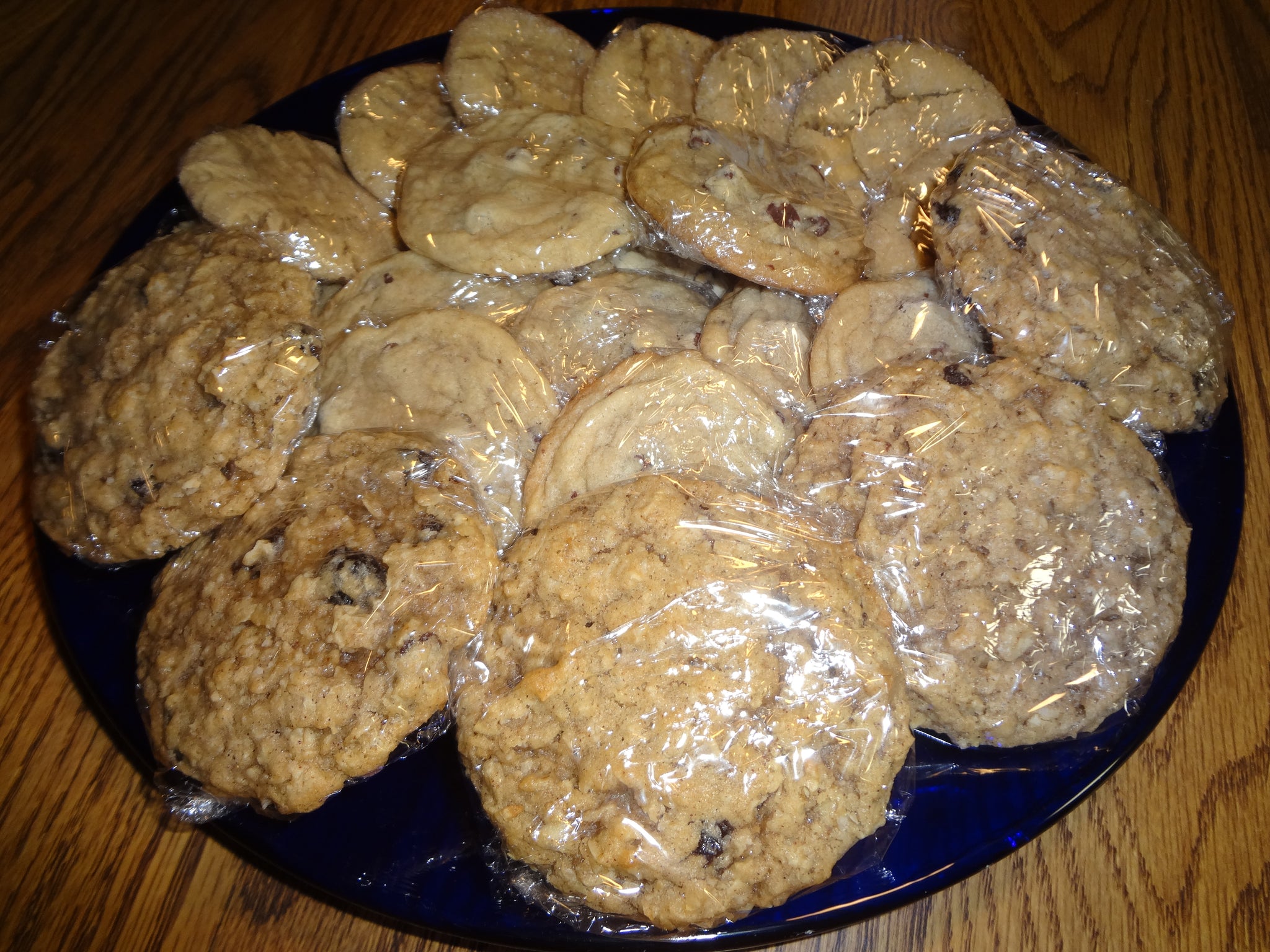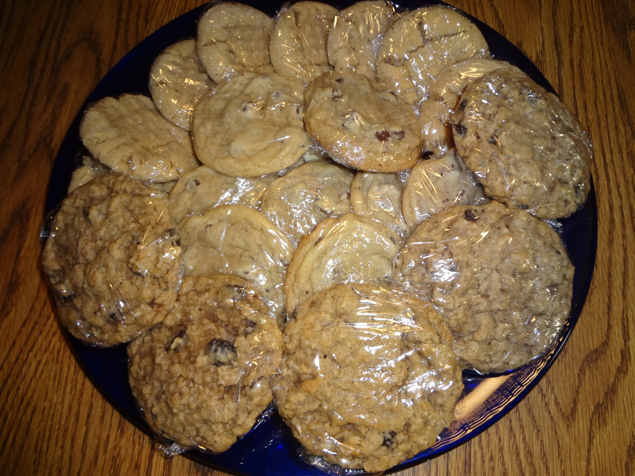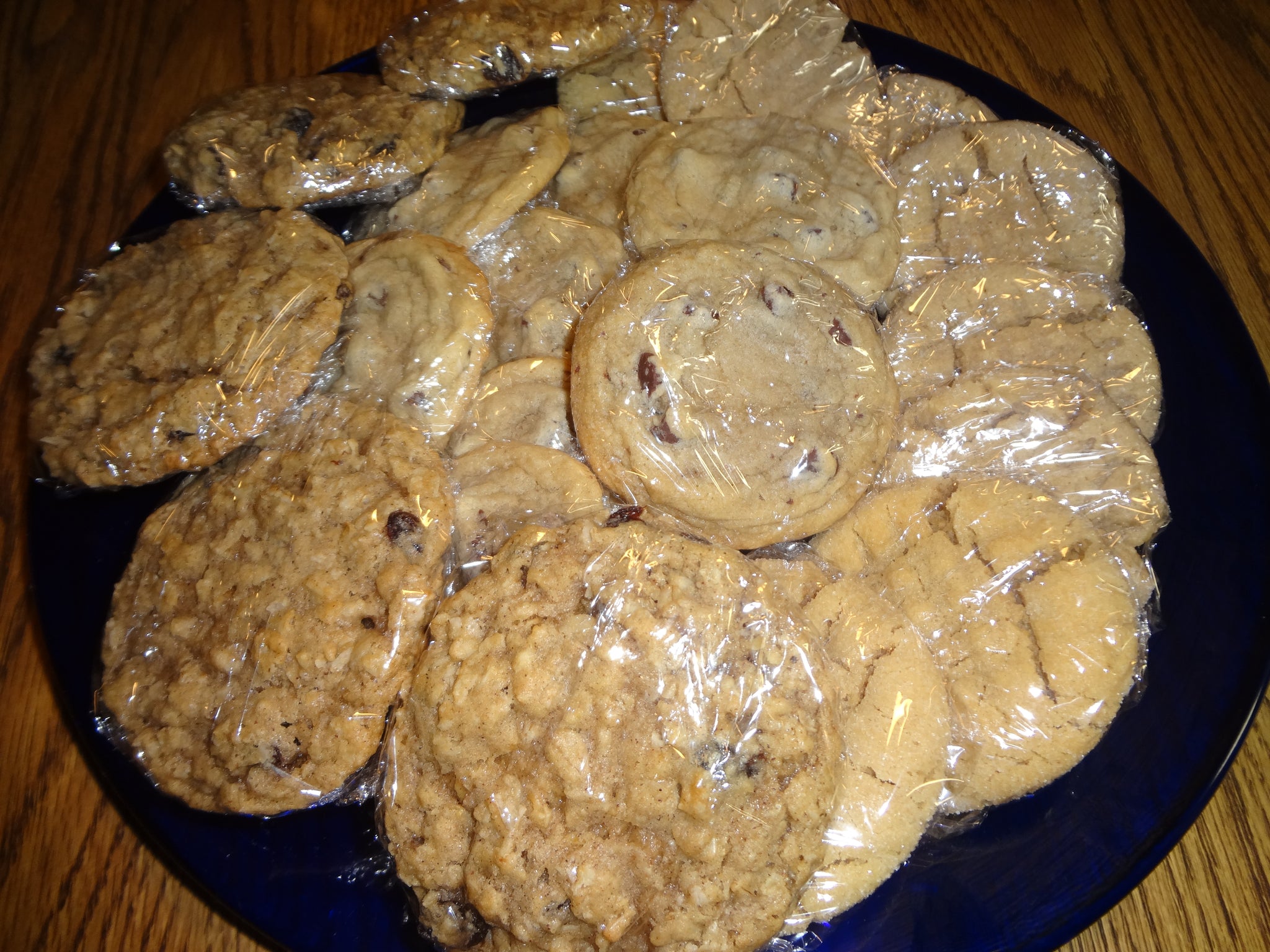 Party Tray of Homemade Timeless, Classic Cookies. You will receive 3 dozen (36) Classic Chocolate Chip Cookies, 20 Oatmeal Raisin Cinnamon Cookies and 3 dozen (36) Classic Peanut Butter Cookies for a total of 92 cookies. This is a perfect tray of delicious cookies for families, parties, barbecues or any event. Tray is not included. Cookies will be individually wrapped and packaged in food grade cellophane bags. Please see individual listings of these cookies for a complete list of ingredients. Purchasing by the tray will give my buyers a 10% savings compared to purchasing each variety individually.
