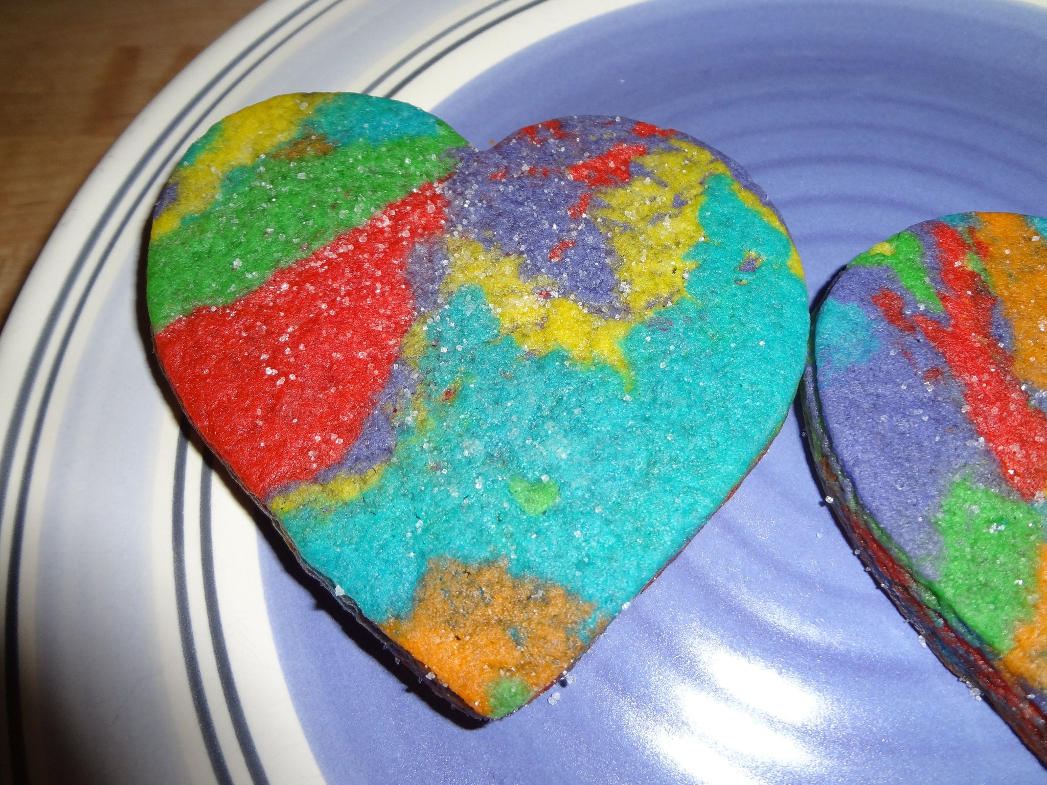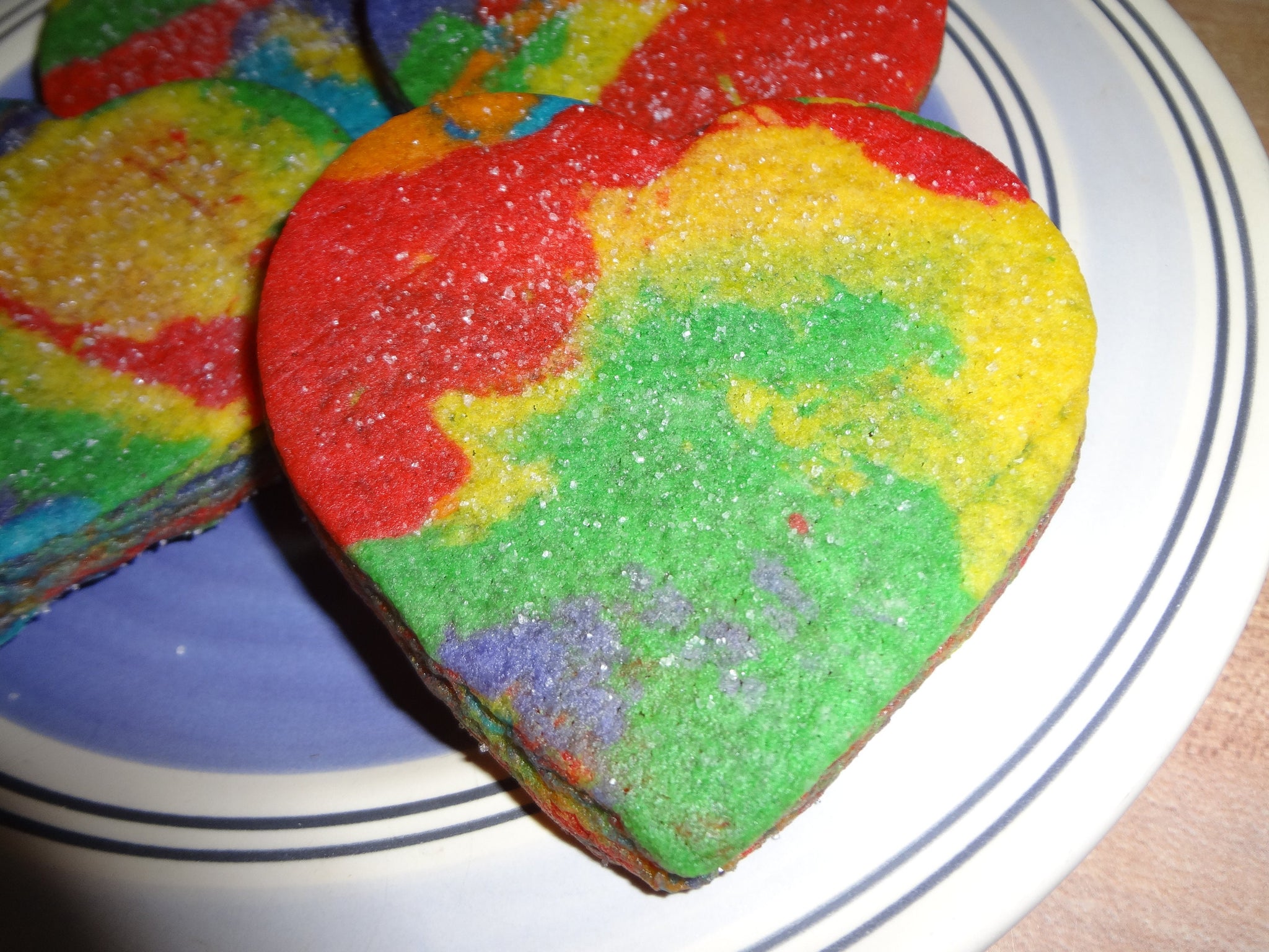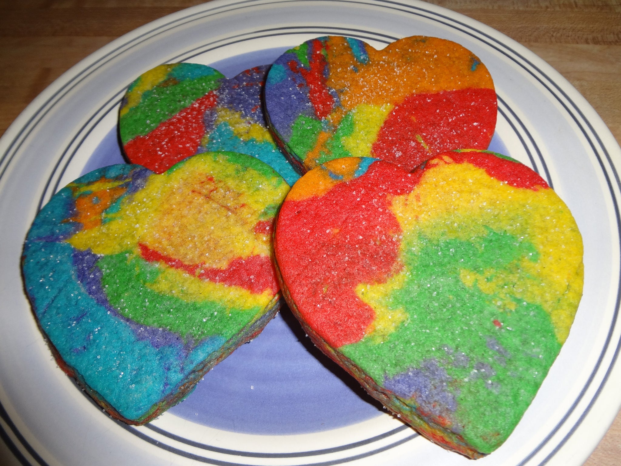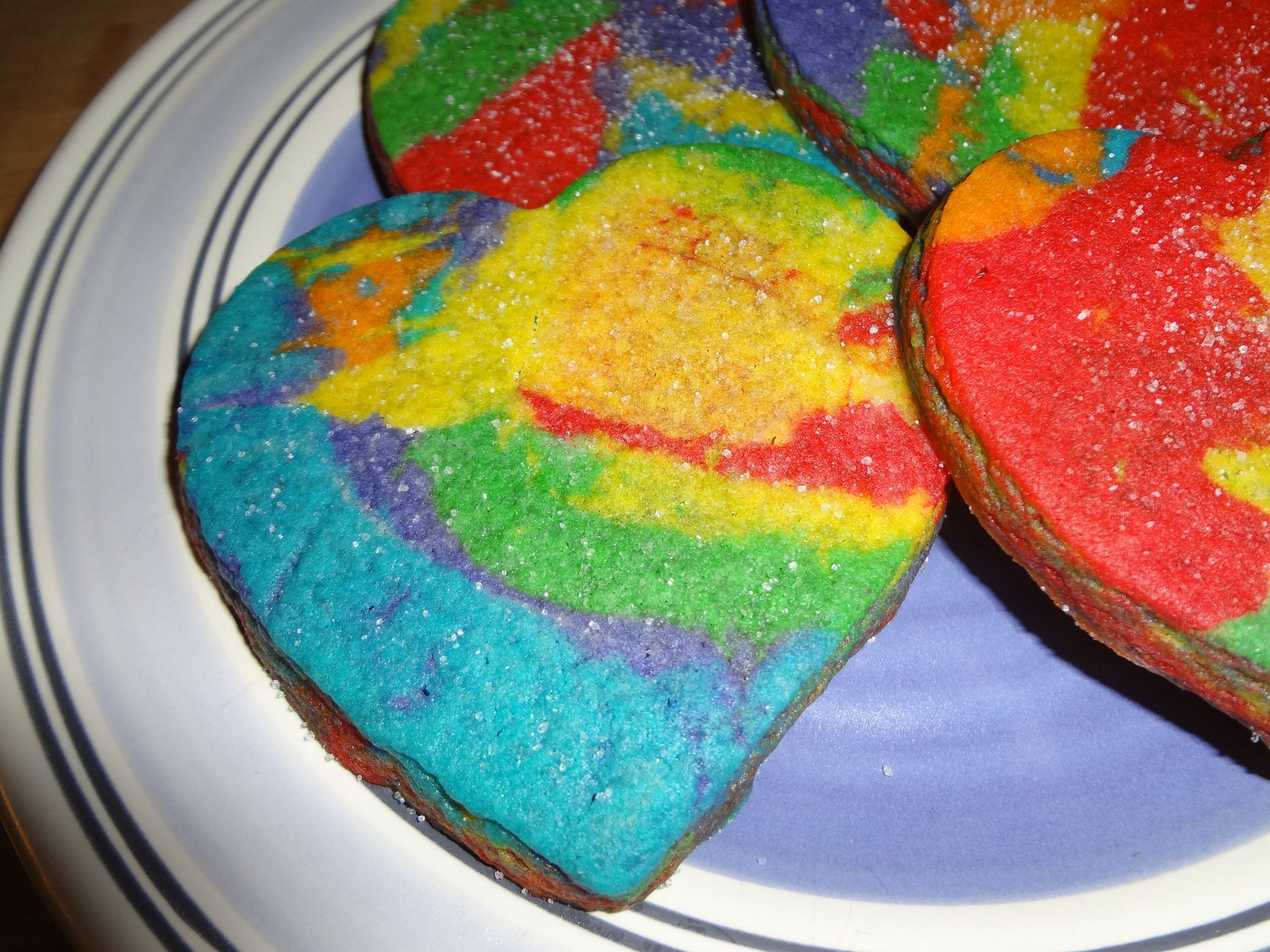 Soft and Vibrant Homemade Rainbow (Pride)/Tie-Dye Sugar Cookies. These cookies are filled with pure vanilla flavor and are perfect for any time of the year. There are six different colors used for these cookies. The colors are listed in the ingredients list. If you would like a substitution for any of the colors, please send me a message.