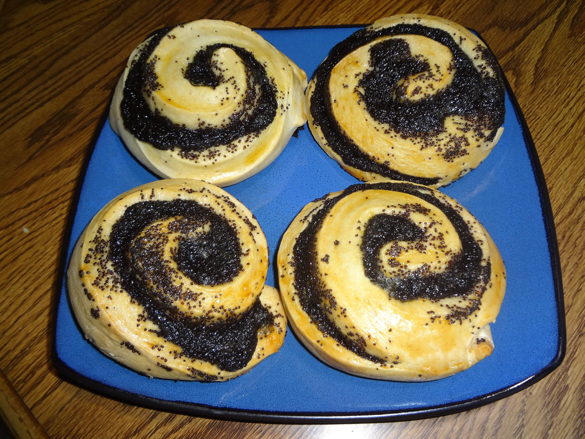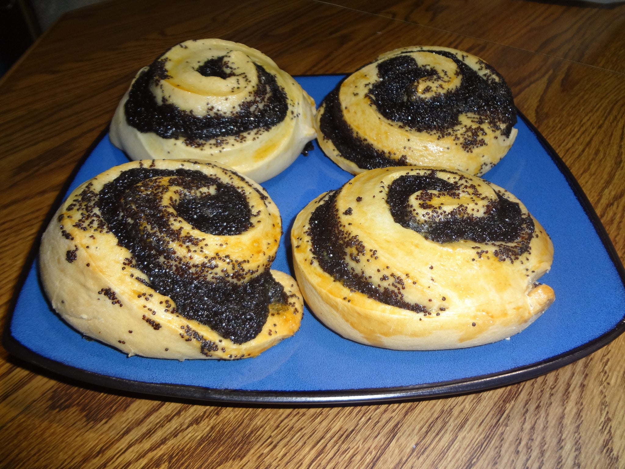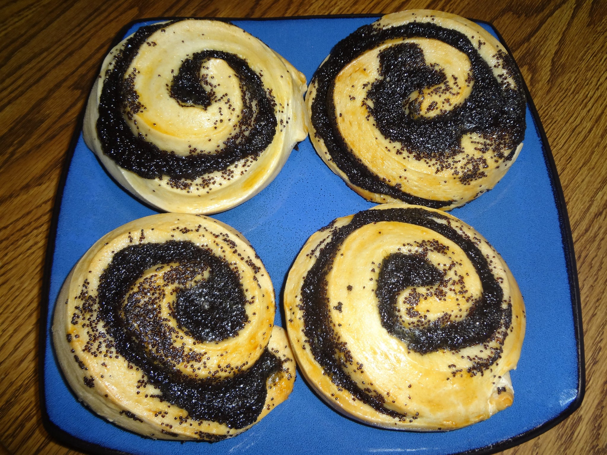 Entirely Homemade Fresh Poppy Seed Rolls (Piroshki). From the dough to the poppy seed filling, both are entirely homemade. The poppy seeds are fresh and not bottled. These rolls are extra large and stuffed with a sweet homemade filling. They pair great with a cup of coffee or tea.