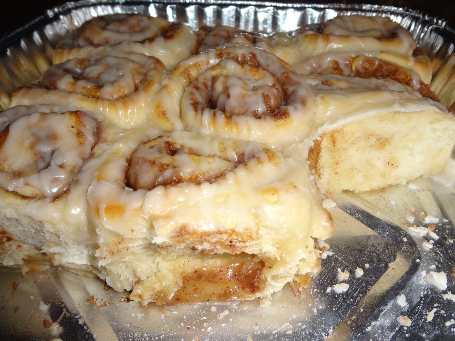 Favorite Yummy Homemade Cinnamon Rolls. Ooey and Gooey, these cinnamon rolls are fantastic when put in the microwave for a few seconds. These rolls will be baked in a foil 13" x 9" pan with a lid. The icing is packaged separately in a plastic container which enables buyers to use only the amount wanted. A small amount of water may need to be added if icing gets too thick.