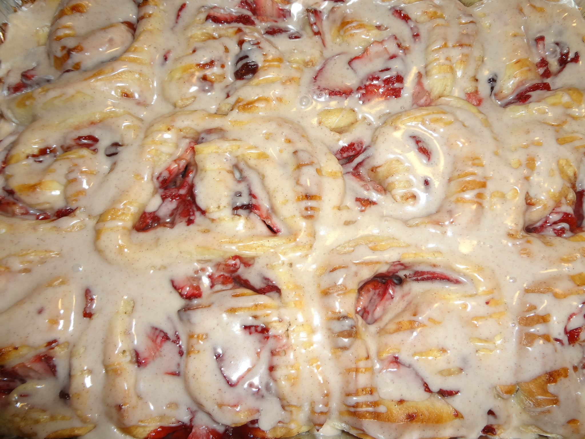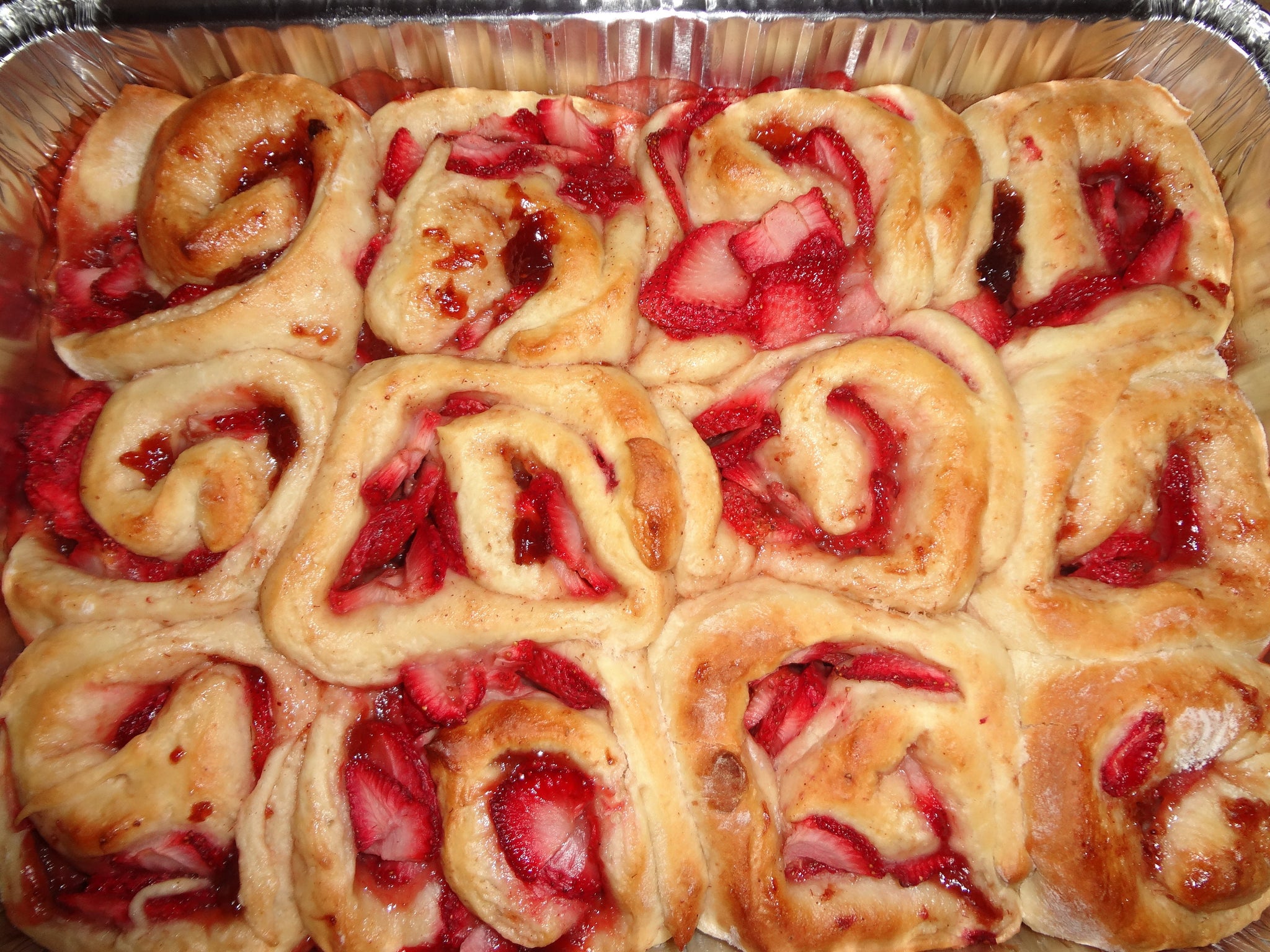 Flavorful Homemade Strawberry Cinnamon Rolls filled with fresh strawberries and a touch of cinnamon. These rolls are amazing with or without a cup of coffee. They will be baked in a foil 13" x 9" pan with a lid and packaged using insulated wrap and ice packs during the warmer months.