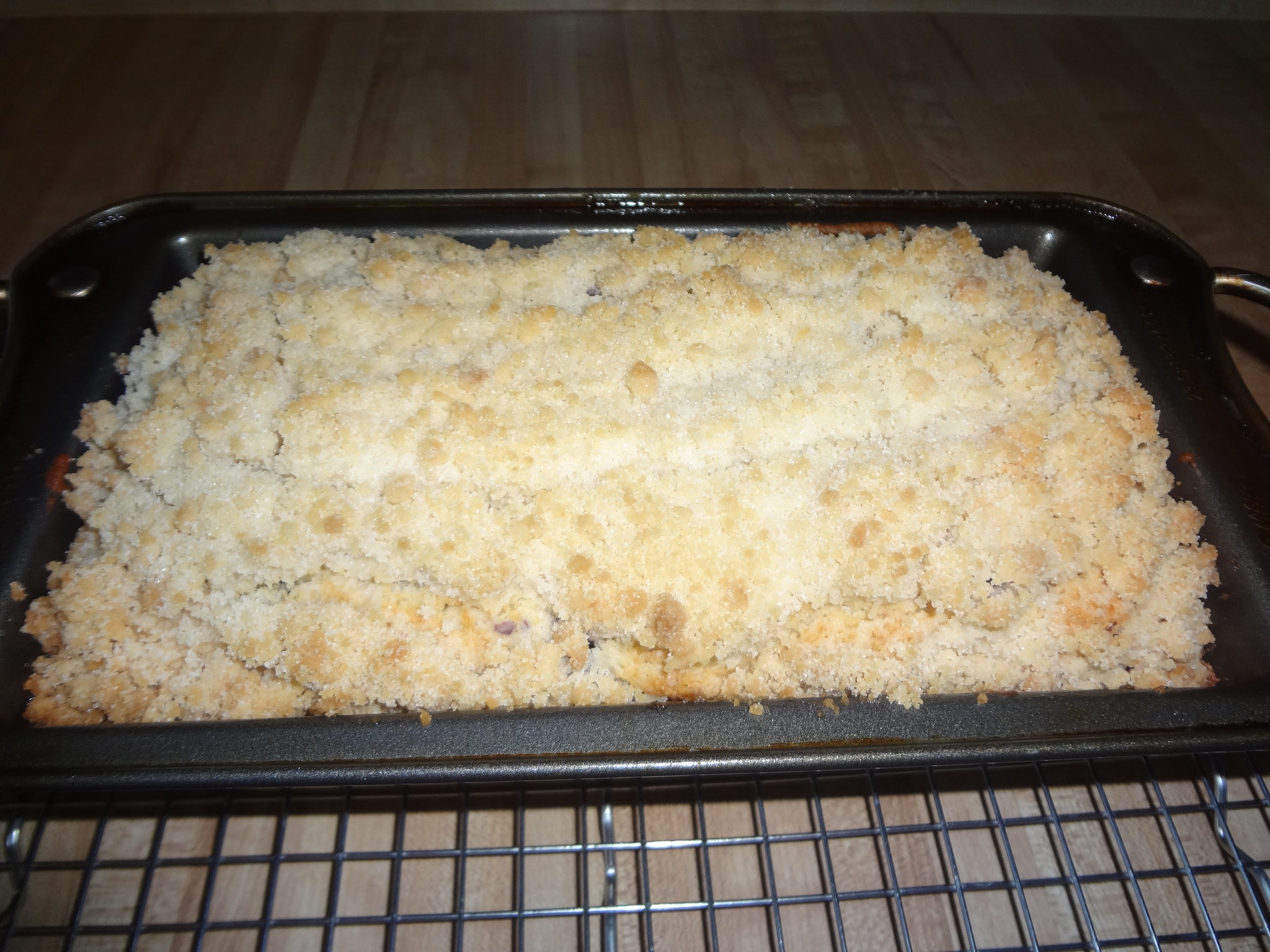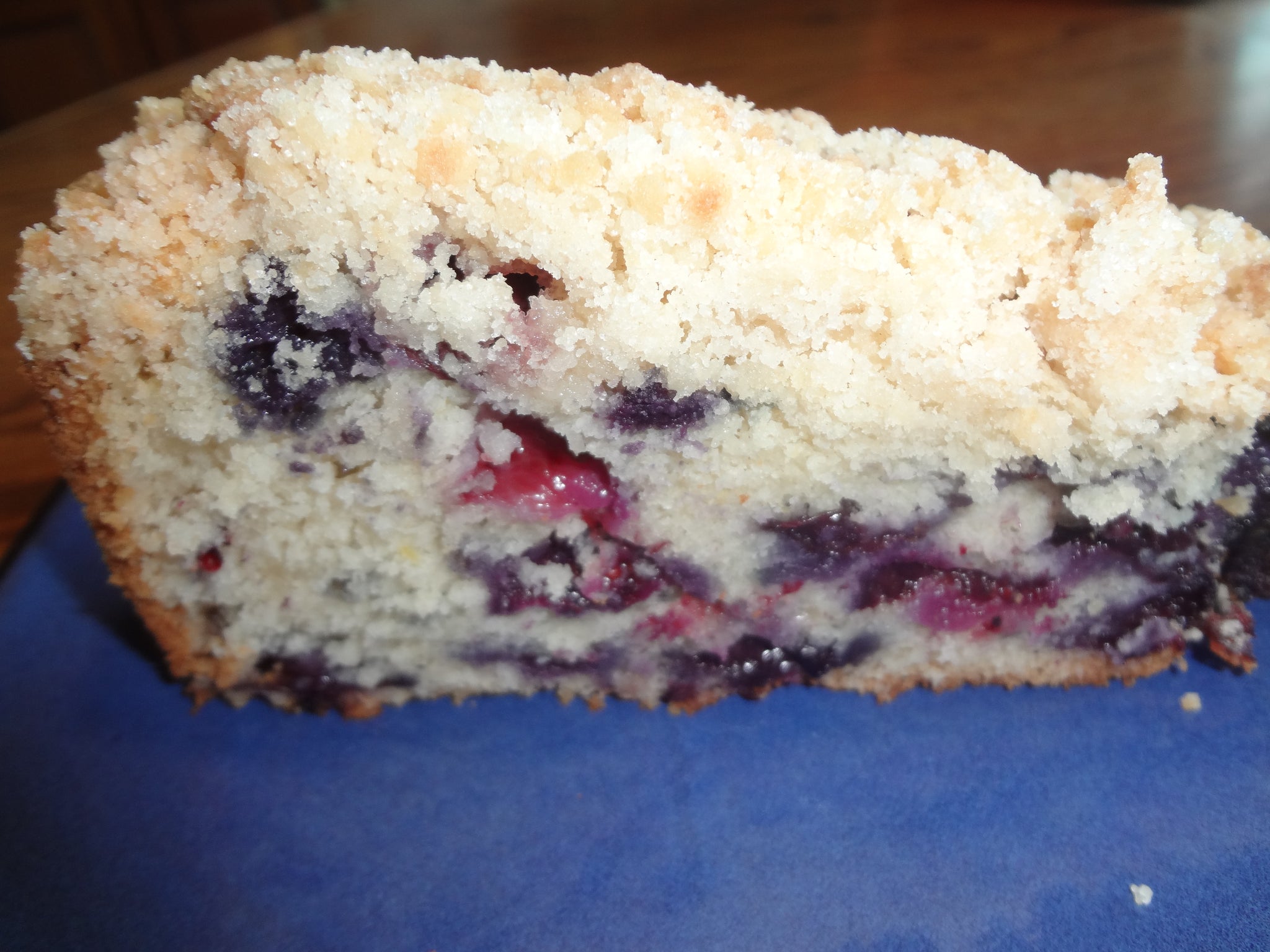 Moist Homemade Blueberry Bread With Buttery Streusel Topping. This bread is stuffed full of fresh blueberries and is made extra special with a buttery sugar streusel baked on top. PLEASE NOTE THAT WE DO NOT KNOW WHAT THE WEATHER IS LIKE IN ANY GIVEN AREA DURING THE SEASONS. THAT BEING SAID, FOR PRODUCTS THAT CONTAIN FRUIT OR ANY OTHER WEATHER (HEAT) SENSITIVE INGREDIENTS, YOU WILL HAVE THE CHOICE OF EITHER HAVING YOUR ORDER SHIPPED WITH THERMAL WRAP AND ICE PACKS OR NOT. THIS WILL HELP US GREATLY BY ELIMINATING THE GUESS WORK FOR US AND WILL ALSO HELP TO ENSURE YOU WILL RECEIVE YOUR ORDER IN PERFECT CONDITION.