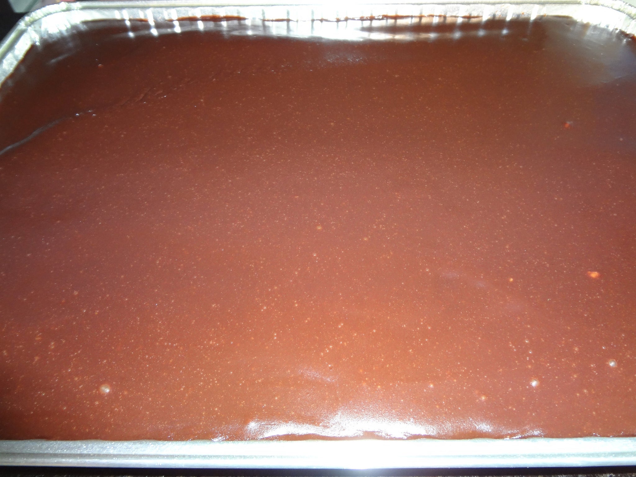 The Best Moist and Rich Texas Chocolate Sheet Cake Ever! This is a half sheet cake which measures 18" long and 13" wide. It is beyond moist, chocolaty, rich and is topped with a smooth layer of chocolate icing or icing with pecans. You will hear oohs and aahs from anyone who takes one bite.