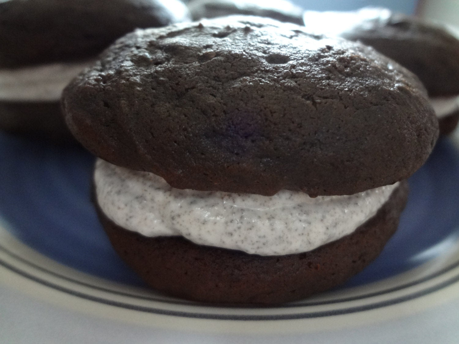 Soft & Creamy Homemade Cookies and Cream Whoopie Pies. The cake is soft and the filling is so creamy with lots of crushed Oreo's inside the filling. The combination of a Whoopie Pie and Oreo cookies.... need I say more? Whoopie Pies will be packaged in plastic trays so they will not be smashed in the cellophane bags. They will all be individually wrapped as normal.