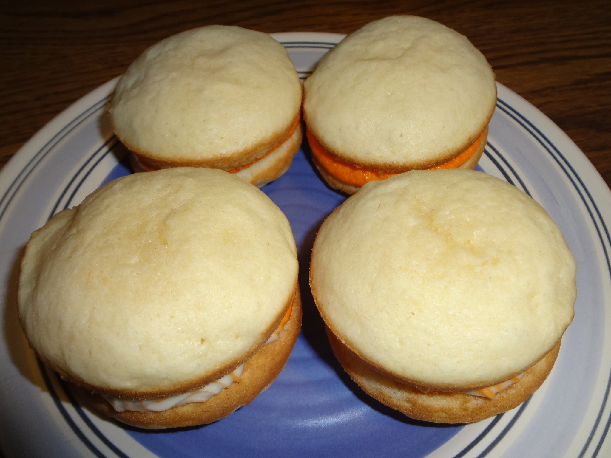 Sweet and Citrusy Homemade Orange Creamsicle Whoopie Pies. Light and fluffy cake like cookies filled with sweet swirled buttercream. A sweet summer delight. Whoopie Pies will be packaged in plastic trays so they will not be smashed in the cellophane bags. They will all be individually wrapped as normal and packaged using insulated wrap and ice packs during the warmer months.
